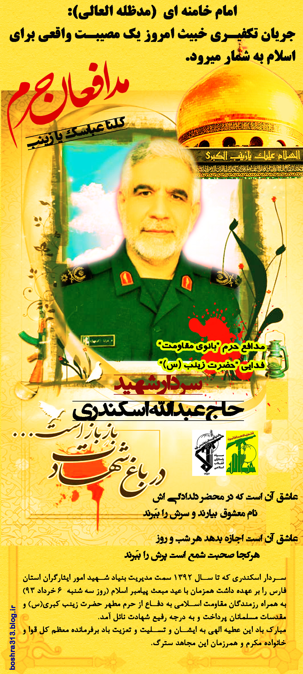 ولادت آقا ابا عبدالله (ع) و روز پاسدار بر بزرگ مردان و دلاوران ایران زمین علی الخصوص به محضر شهدا و فرماندهان  تبریک و تهنیت