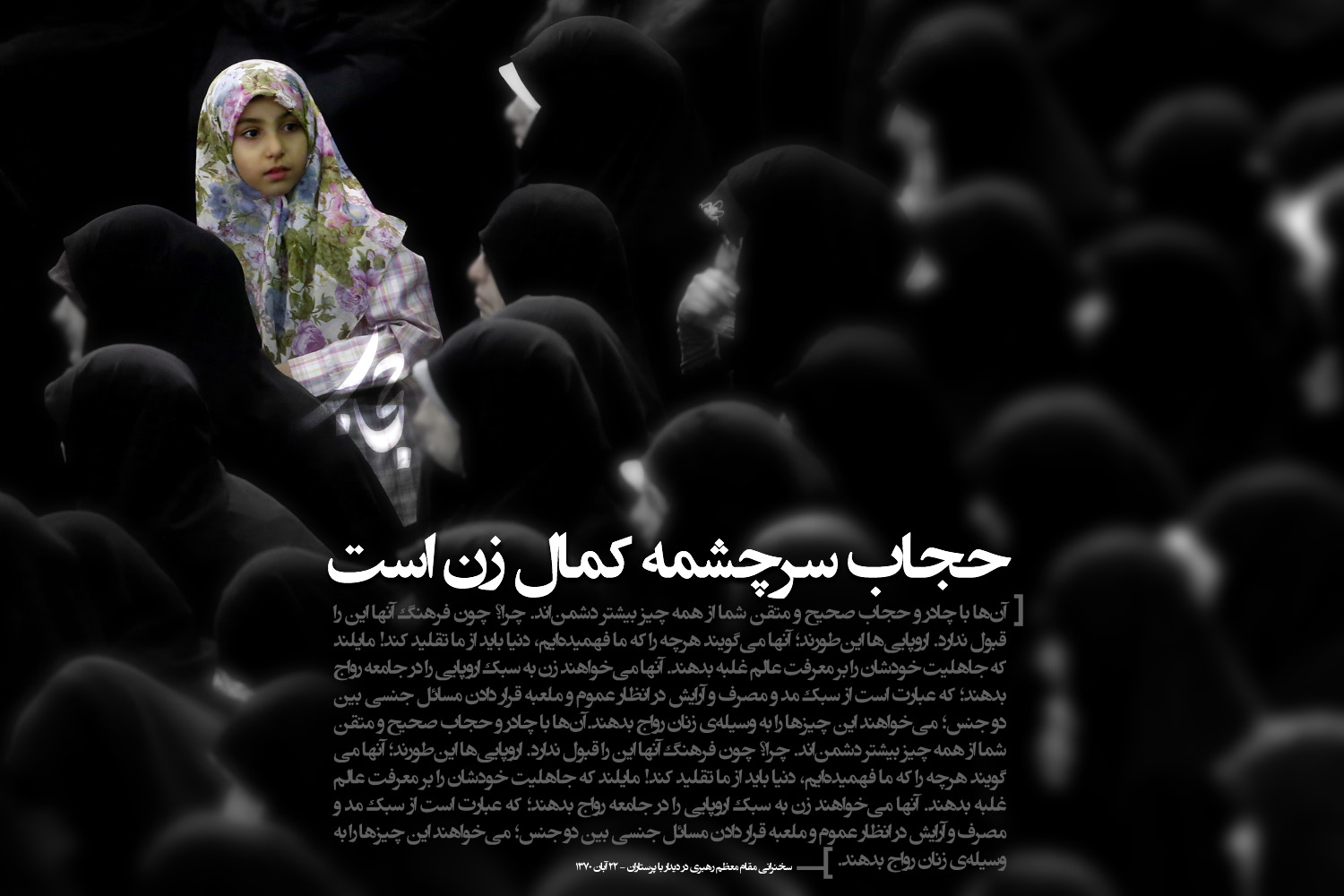 خودنمایی و جلوه فروشی یک لحظه است و آثار سوء آن برای جامعه و اخلاق و حتی سیاست آثار مخرب و ماندگاری است درحالی که ملاحظه عفاف، اگر چنانکه سختی داشته باشد سختی کوتاهی است اما آثار عمیق و ماندگاری دارد. خیلی باید مراقبت کنند مسئله حجاب را مسئله عفاف را… خود خانم ها باید رعایت کنند.